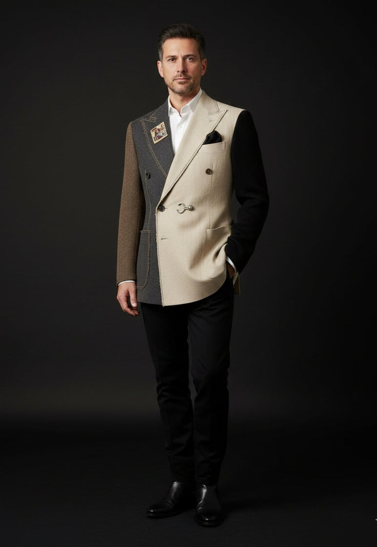 The Nocturne Tri-Tone represents sophisticated tailoring with its distinctive three-tone color blocking. This contemporary suit...