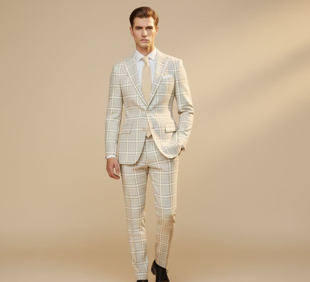 The Luxe Cream Grid Suit combines refined tailoring with contemporary design. Crafted in a sophisticated cream tone, the subtle grid pattern adds visual depth without overwhelming the palette, making it versatile for both boardroom presentations and upscale social occasions. The structured fit ensures a polished silhouette, while premium fabric construction delivers comfort throughout the day. An investment piece that transcends seasonal trends, this suit pairs effortlessly with classic accessories for timeless elegance.