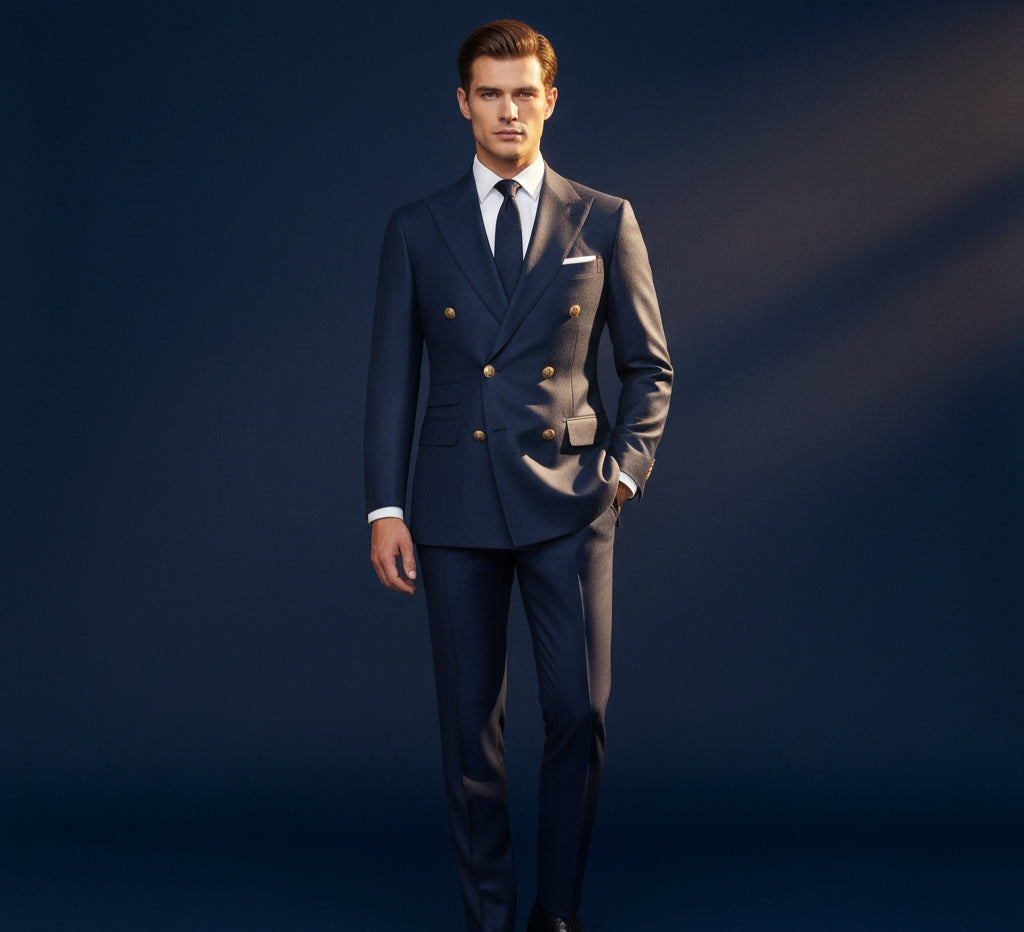 The Maritime Classic represents timeless sophistication in tailored menswear. This distinguished suit draws inspiration from nautical heritage, featuring clean lines and refined proportions that command respect in any professional setting. Crafted with meticulous attention to detail, it combines traditional tailoring techniques with contemporary fit standards. The structured silhouette flatters the modern man while maintaining the understated elegance that defines classic suiting. Perfect for boardrooms, formal events, or anyone who appreciates quality craftsmanship and enduring style. An investment piece that transcends seasonal trends and delivers versatile wear across countless occasions.